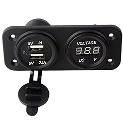 ZJchao zjchao030 Dual USB Charger Socket Waterproof Design With DC Voltmeter Digital for Car, Boat, Marine, Carvan