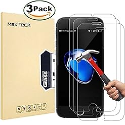 MaxTeck [3 Pack] iPhone 6 6S 7 8 Screen protector, 0.26mm 9H Tempered Shatterproof Glass Screen Protector Anti-Shatter…