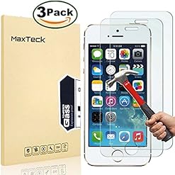 MaxTeck [3 Pack] Screen Protector for iPhone 5 5s SE , 0.26mm 9H Tempered Glass Shatterproof Screen Protector Anti…