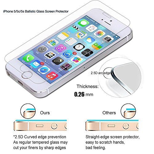 Special Note: Due to the curved edge design of the 5S / 5 /5C SE and to ensure compatibility with most cases,our screen protector does not cover the entire screen only the flat area. High transparent and ultra-clear featured glass screen protector for iPhone, ensures quick response and 100% accurate touch on the iphone screen, also preserves the 3D function of the iphone.