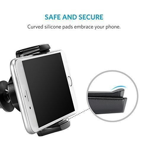 Enjoy safe hands-free phone access on the road. A reinforced base ensures that the car mount stays firmly fixed to your car’s air vent. A secure spring-loaded cradle with silicone-padded grips keeps your phone in-place.