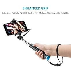 A sleek silicone-rubber handle and wrist strap ensure you always have a comfortable and secure hold when taking your selfies.