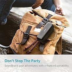 A heavy-duty aluminum carabiner hook is ideal for latching your SoundCore onto a backpack, or resting practically anywhere. Taking your tunes on-the-go just got easier and more secure.