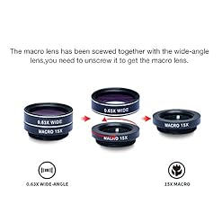2 in 1 Design:The 0.63x wide lens and 15x macro lens these two small lenses are screwed together for easy storage.To use the wide angle,simply attach both lenses together.To use the macro lens, simply unscrew the wide angle lens.