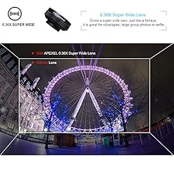 APEXEL 7 In 1 Phone Lens Kit 198 Degree Fisheye Lens +0.36x Super Wide Angle Lens+2x Telephoto Lens+ 0.63x Wide Lens&15x…