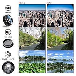 Universal Compatibility: The phone lens included in this set can be used with a wide range of cell phones and mobile devices including iPhone 7,6,6 plus,6s,6s plus, iPad Air and other smartphone.