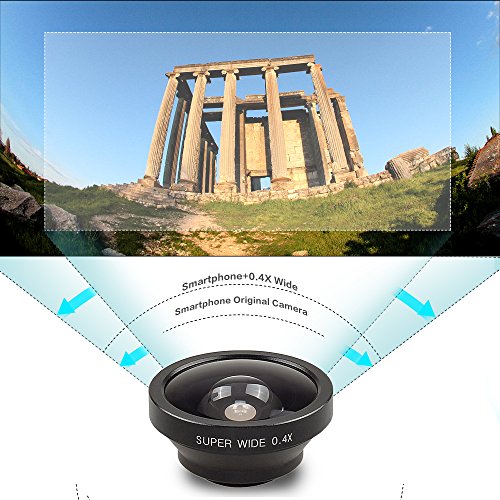 GREAT VISION EFFECT:The 198°fisheye lens offers you a wide hemispherical and fantastic image instead square one.The 0.4X super wide-angle lens projects a substantially larger image circle than normal lens. Suitable for large group of people,landscape and building etc.