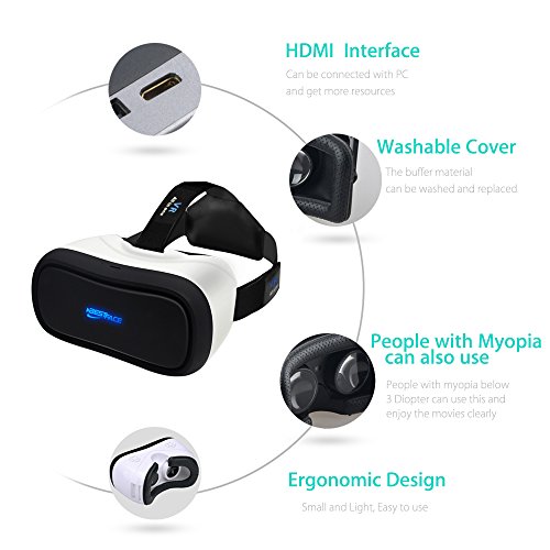 This 3D virtual reality glasses headset designed with environmental material, make sure you have healthy and environmentally friendly experiences. Comfortable headband, super face foam protector, ideal heat dissipating design Ventilation holes are convenient for inserting earphone and charging, let you enjoy your VR world whenever and wherever. The T-shaped straps on the VR headset make it adjustable for different people.