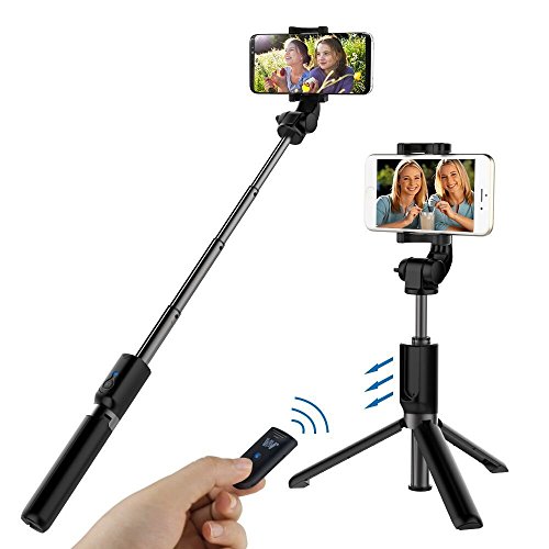 【BLUETOOTH SELFIE STICK with REMOTE and TRIPOD】Selfie stick tripod with built-in Bluetooth remote, up to 33ft or 10 meter connection distance, it can help you to take a self-photograph or group photos. Record your important moment like travel, graduation, parties, wedding. and it can also be a phone holder so you can watch movies at home, have a video conferencing in the company and shoot videos.