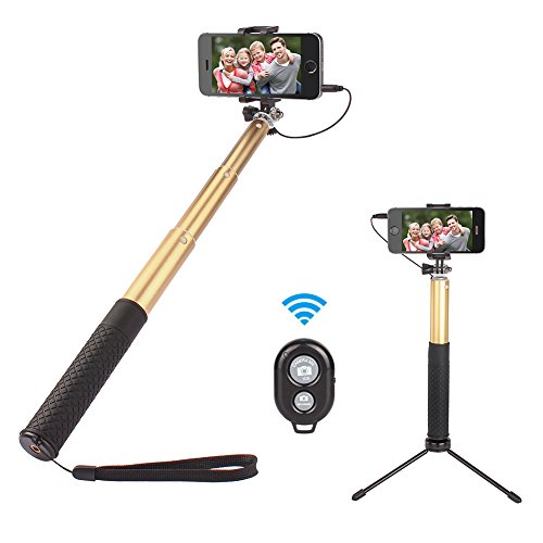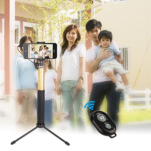 Like any good selfie stick the comeswith bluetooth that is compatible with any bluetooth enabled cellphone, and forwhen you’re using the tripod it works up to 40ft away.