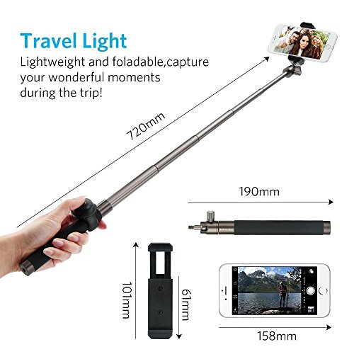 Extendable Length & Width. The selfie stick can be stretched from 190mm to 720mm, allowing you to have more flexible options when adjusting your viewing angle. The stretch space of phone back clip is 61mm to 101mm, perfect to adapt to almost all sizes of mobile phones.