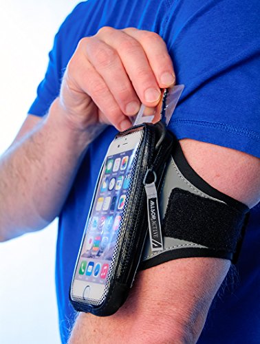 Sweat and Weather Resistant Phone Case has reflective zipper trim for safe and easy visibility. Phone case has secure zip closure, space to store key, cash etc. and access to earphones at both ends.