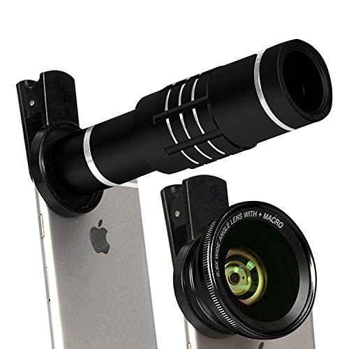 Multi-functional camera lens kit- Package includes a universal 18X zoom telephoto lens with 0.6X wide angle lens and 12.5X super macro lens with clip.This is everything you need to capture great shots like a pro with nothing but your camera phone !Make your photography skill to next level !