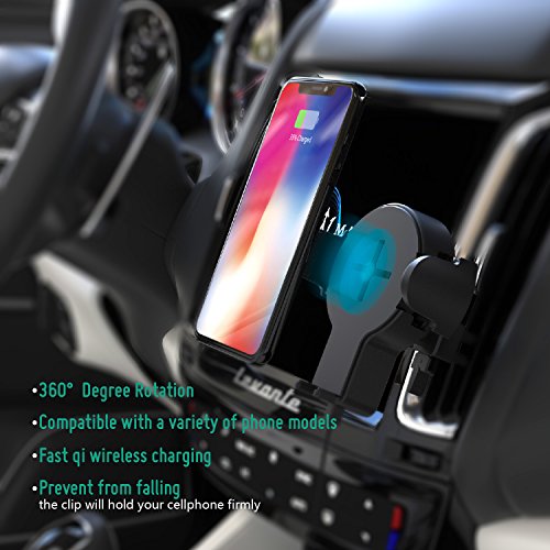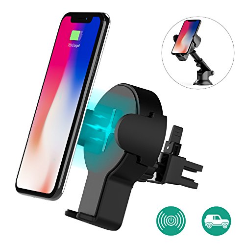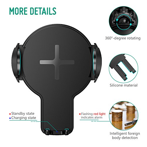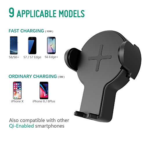 Auckly Fast Wireless Car Charger, 360°Rotation Charging Pad Stand for iPhone X / 8/ 8 Plus, Samsung Galaxy S8/ S8 Plus/ S7/ S7 Edge, Note 5
