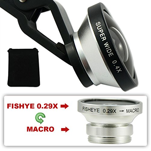 First2savvv JTSJ-CJ3-16 silver Universal Detachable 0.4X Super Wide Angle + 0.29X fish eye + Macro lens professional…