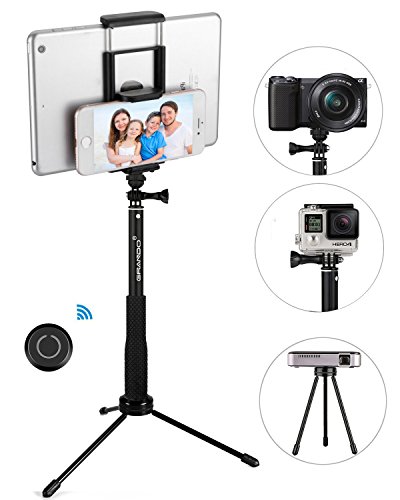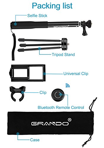 This GRANDO selfie stick upgrade at 2017, 2 in 1 clips design makes the selfie stick with almost comprehensive using for tablet, smartphone and cameras, a high end alloy trusted quality tripod stand is also included, it means that you’ll won 4 selfie stcik devices at the same time and you don’t have to spend extra money any more.