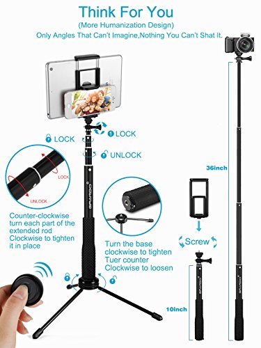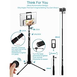 EXTENDABLE FUNCTION: You can adjust it from 10.23 to 36.22 inches length. Suitable for various length requirements of photo taking,landscape or portrait photo captures everything. A tripod stand is also included, hand free for distance photo taking.
