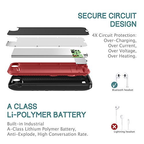 Guaranteed Safety–The battery case have the CE, FC, ROHS certification. And the sophisticated circuit design with over-heated, over-voltage, over-current and over-charging protection to ensures complete safety for you and your iPhone .