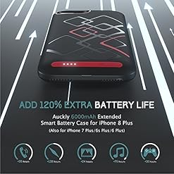 Auckly 6000mAh Smart Battery Case for iPhone 8 Plus/7 Plus/6s Plus/6 Plus
