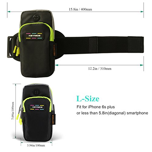 ★Brand:Keynice.This size work for 3.5~5.8inch device. DOUBLE POCKETS Convenient place your cellphone、earphone、cable、charger、keys、ID cards, wallet, and other accessories. Waterproof, durable to use and comfy to wear, perfect for sports and outdoor activities.