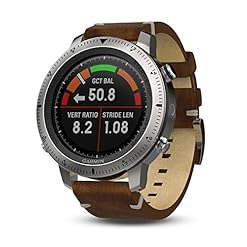 Crafted in premium watch quality, fenix Chronos is the first Garmin timepiece to combine a durable metal case with integrated performance GPS to support navigation and sport. In the tradition of classic tool watches it features a tough design and a set of modern meaningful tools like Elevate wrist heart rate, various sports apps, advanced performance metrics for endurance sports, Garmin quality navigation features and smart notifications. In fenix Chronos top-tier performance meets sophisticated design in a highly evolved timepiece that fits your style anywhere, anytime.Solid brushed 316L stainless steel case with brushed stainless steel bezel and integrated EXOTM antenna for GPS + GLONASS support. High-strength scratch resistant sapphire crystal. Brown vintage leather strap with hand-sewn contrast stitching and nubuck inner lining and quick release mechanism.