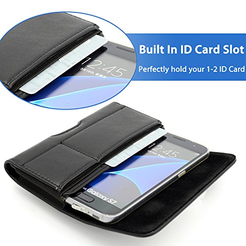 This pouch is equipped with one durable belt clip , 2 additional secure belt loops ,two ID card slots and front magnetic closure.