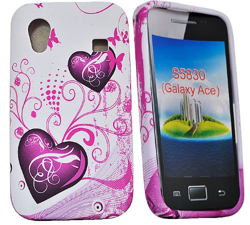 Phonedirectonline- Purple heart butterfly silicone case cover pouch for Samsung galaxy ace s5830