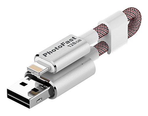 PhotoFast Memories Backup with Data Transfer Memory Card Included, 128 GB, USB 3.0 Cable, Lighting Cable for iPhone, Smartphone and IOS devices, Mac and PC, Silver/Red