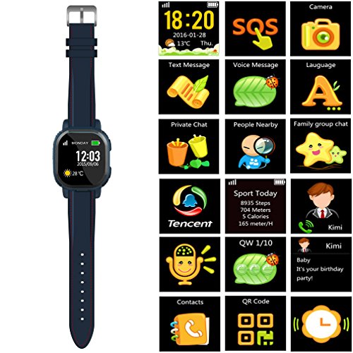 Functions: Voice calling, GPS tracking, SOS, safety zone, take photos, voice message, text message, group chat, pedometer, history path, weather, alarm, etc.