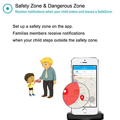 Track your child’s precise location. Press the SOS button to text family members and call the watch admin in case of emergency. Set up a safety zone on the app. Families members receive notifications when your child steps outside the safety zone.