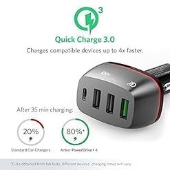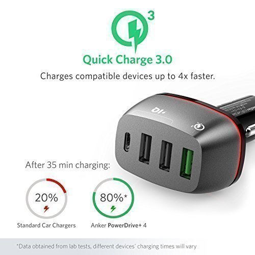 Anker Quick Charge 3.0 & USB Type-C 54W 4-Port USB Car Charger, PowerDrive+ 4 for Galaxy S7/S6/Edge/Plus, Note 5/4 and…