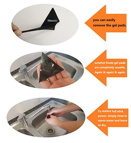 ▲ Sunshot fixate gel pads are able to hold up to 1 KG, although this may vary with the texture, type and, size of surface areas used. We recommend using multiple gel pads for heavier or precious items to give you peace of mind and test in a safe environment.