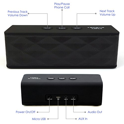 TECEVO® T4 NFC V2 Bluetooth Speaker features instant connection and playback with your NFC-enabled device, deep, powerful bass and conference calls with its integrated microphone.