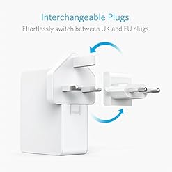 International voltage compatibility and interchangeable UK and EU plugs make PowerPort 4 Lite ideal for travel.