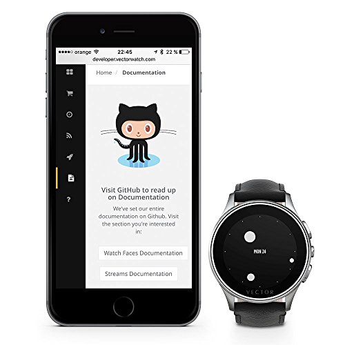 Vector Contemporary Luna Standard Fit Smartwatch with Steel Silver Case Black, Leather Strap and 22mm Standard Buckle