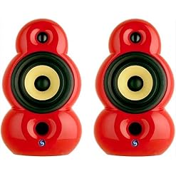 Scandyna Smallpod Active Designer Bookshelf Stereo Speakers with Bluetooth – Red