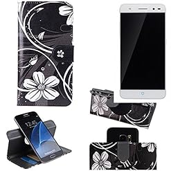 K-S-Trade Compatible With ZTE Blade V7 Lite 360° Wallet Case Flip Cover ‘Flowers’ | Smartphone Protective Bag Stand Card…